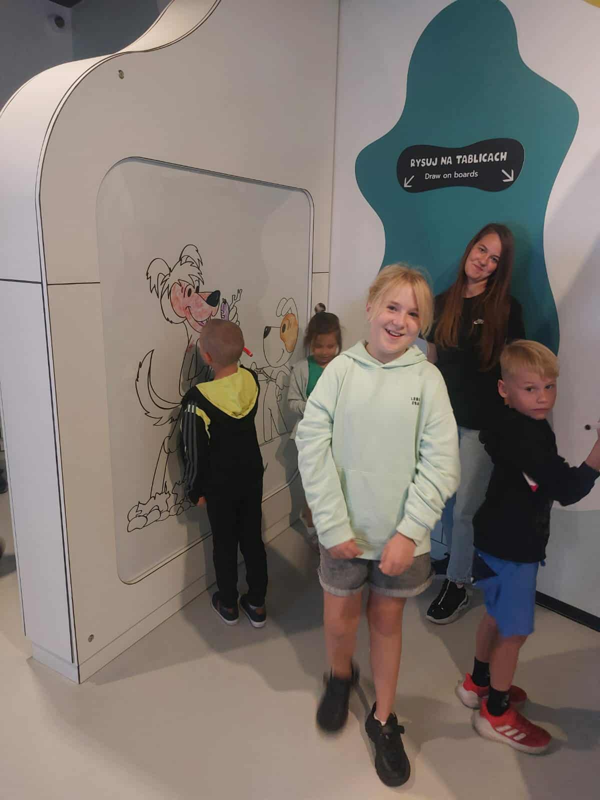 27 sierpnia odbyła się nasza ostatnia wakacyjna wycieczka. Tym razem odwiedziliśmy Centrum OKO- Studio Filmów Rysunkowych w Bielsku-Białej. Poznaliśmy historię studia, dowiedzieliśmy się jak się tworzyło scenariusze i postacie w animacji rysunkowej, jak kiedyś ożywiano obraz, jak powstawały dźwięki do bajek. Do tego każde z dzieci stworzyło swoją bajkę, którą można odtworzyć w domu na komputerze używając kodu QR. Na zakończenie obejrzeliśmy “stare” bajki w Kinie Kreska. Nie zabrakło także czasu na posiłek i po krótkim spacerze po Bielsku-Białej odwiedziliśmy Mc Donald’sa. Wycieczkę możemy zaliczyć do bardzo udanych, tym bardziej, że pogoda nam dopisała.