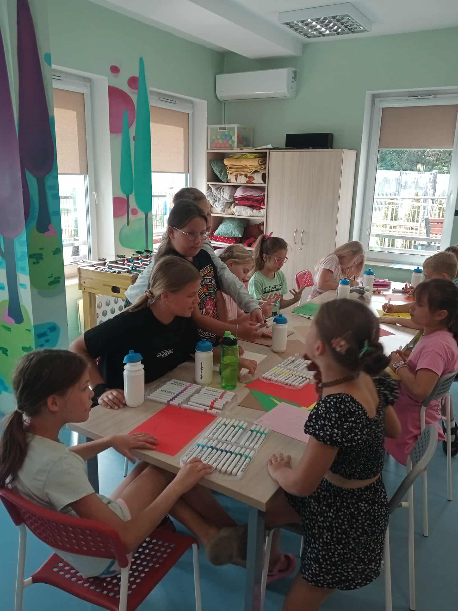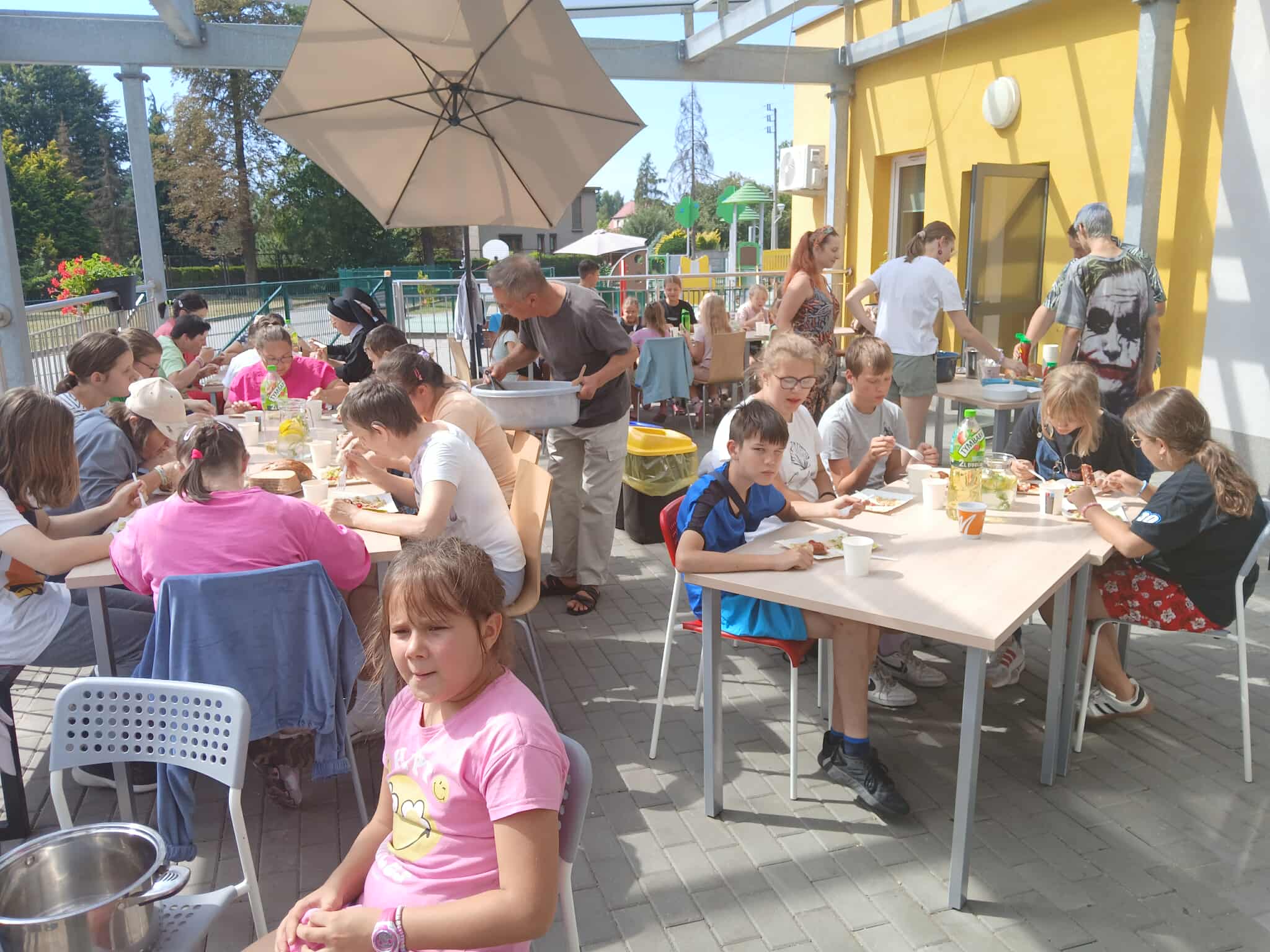 W piątek hucznie zakończyliśmy wakacje. Podziękowaliśmy dzieciom za wspólnie spędzony czas, rozdaliśmy im dyplomy, nagrody oraz cukierki. Potem odbyły się zajęcia plastyczne, dzieci zrobiły sobie pamiątkowe prace, odbijając swoje ręce i wpisując koleżankom i kolegom życzenia lub podziękowania. Padło dużo miłych słów. Potem odwiedzili nas zaproszeni goście z DPS w Jedłowniku. Wspólnie zasiedliśmy do stołów, zjedliśmy kiełbaski i pyszne sałatki. Potem już tylko zabawa na podwórku. Szaleństwa ze zraszaczem, zabawa chustą Klanzy i plac zabaw. Nie zabrakło też pysznej lemoniady oraz słodkości. Spędziliśmy wspaniały dzień. Dziękujemy też za wspólne wakacje. Zapraszamy do naszych świetlic już od 8 września, w godzinach popołudniowych, startujemy od 12:00.