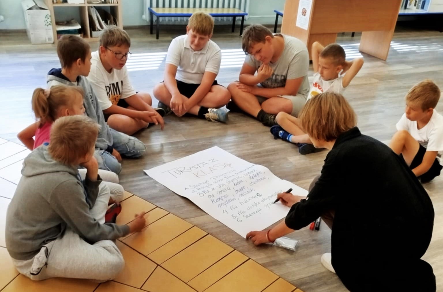 Na dobry początek wszyscy zastanawiali się, jak powinien zachowywać się prawdziwy podróżnik. Wyszło na to, że nie tylko z plecakiem i mapą w ręku, ale też z dobrymi manierami – w pociągu, autobusie, lesie czy muzeum. Turysta z klasą nie zostawia śmieci, mówi „dzień dobry” i uśmiecha się do świata!